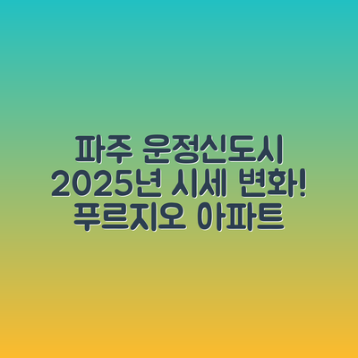 여러분, 2025년 12월의 경기도 파주시 다율동 운정신도시파크푸르지오 아파트의 시세에 대해 궁금하신가요? 아파트 투자는 단순히 금액을 투자하는 것을 넘어, 우리의 미래를 결정짓는 중요한 선택이 될 수 있습니다. 그럼 이 아파트에서 어떻게 투자 전략을 세워볼 수 있을지 함께 알아보도록 하죠!