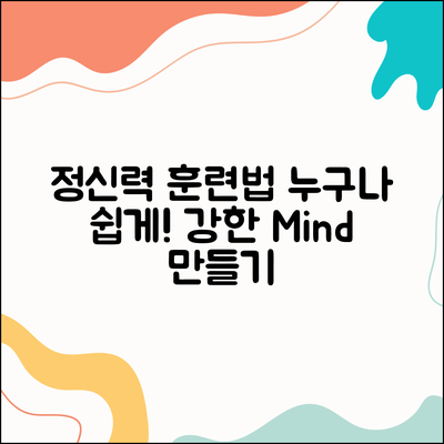 정신력을 기르는 방법은 크게 개인 훈련과 집단 훈련으로 나눌 수 있습니다. 각각의 장단점을 이해하고 실천해 보세요.