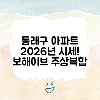 “최근 동래보해이브 아파트를 조사한 결과, 향후 2026년 시세는 긍정적인 흐름을 보일 것으로 예상됩니다. 전문가 D씨는 ‘위치 특성과 주거 환경이 시세에 긍정적 영향을 미칠 것’이라고 강조했습니다.”