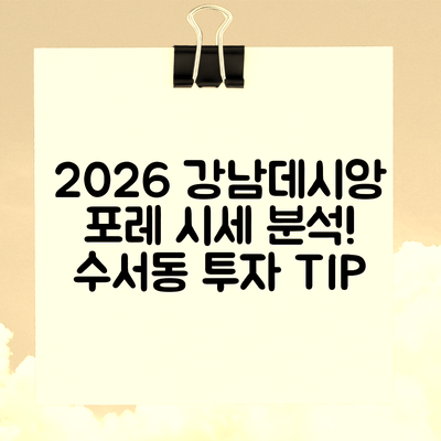 이러한 데이터는 서울시 강남구 수서동 강남데시앙포레 아파트의 2026년 1월 시세를 예측하는 데 중요한 지표가 됩니다. 시장의 변동성을 높이고 관련 요인들을 면밀히 분석함으로써, 보다 정확한 예측이 가능할 것입니다.